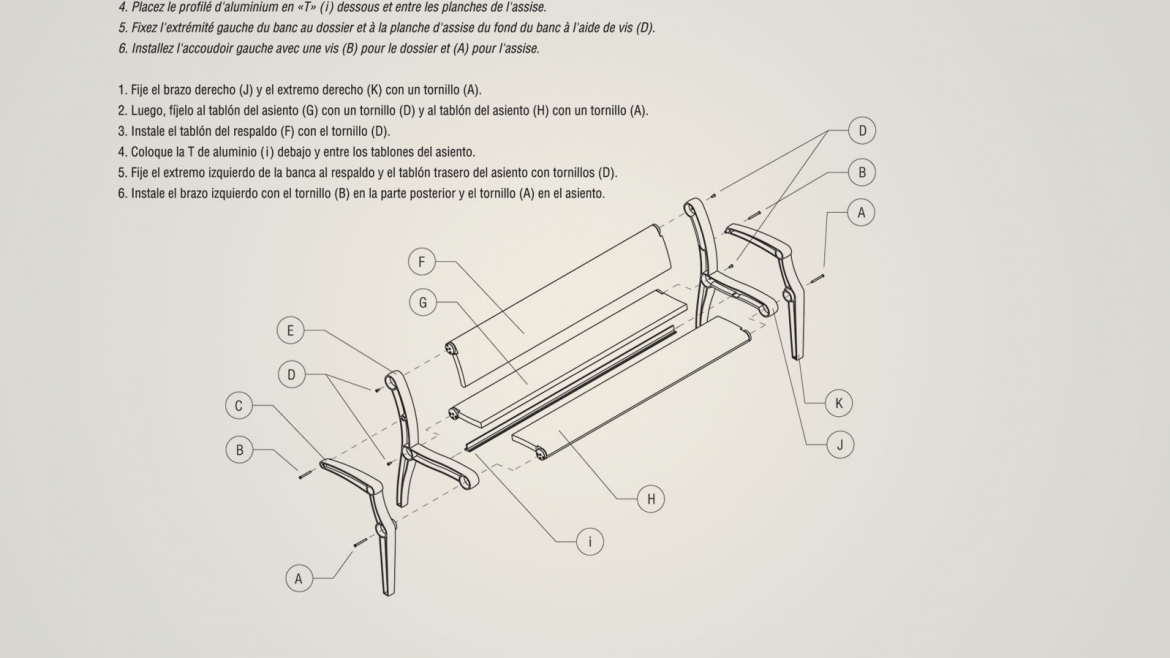 Concevoir une collection complète de mobilier urbain distinctif et à l’ADN bien défini. Développer une structure robuste et un nouveau type d’assemblage unique pour les planches en plastique 100% recyclé. Faciliter le processus de vente et d’assemblage sur sites à l’aide d’outils de communication clairs et simplifiés.